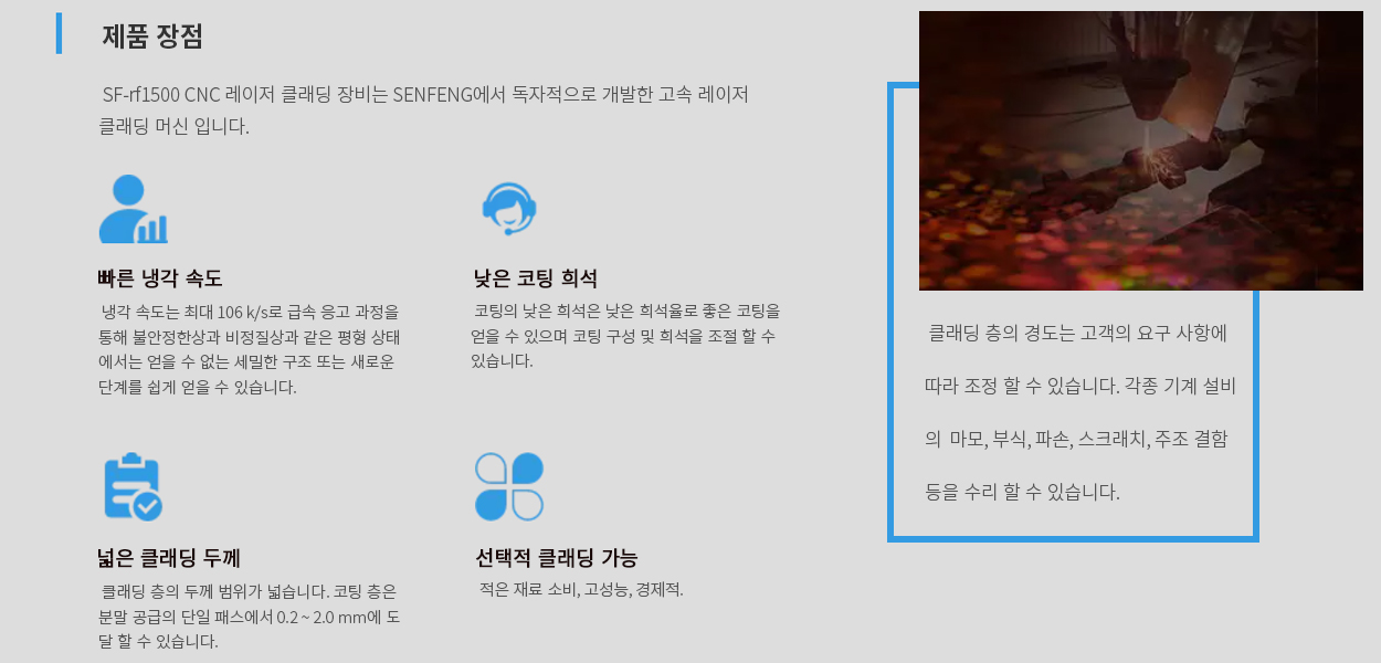 - 최대 ± 0.01mm의 반복 위치 지정 정확도. 클래딩 층의 경도는 고객의 요구 사항에 따라 조정 할 수 있습니다.